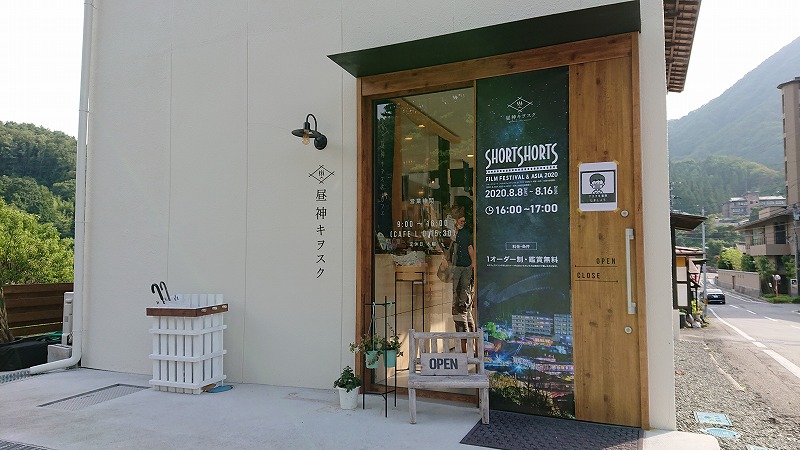 また、「天空の楽園会場」以外でも、カフェ併設のお土産販売店「昼神キヲスク」や、温泉宿「ユルイの宿恵山」「懐石と炉ばたの宿 吉弥」等でもショートフィルムが上映される取り