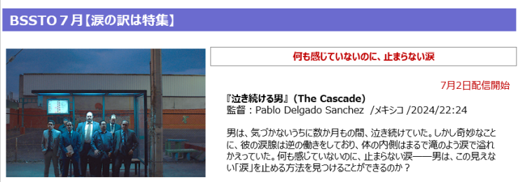 BSSTO7月【涙の訳は特集】ラインナップ