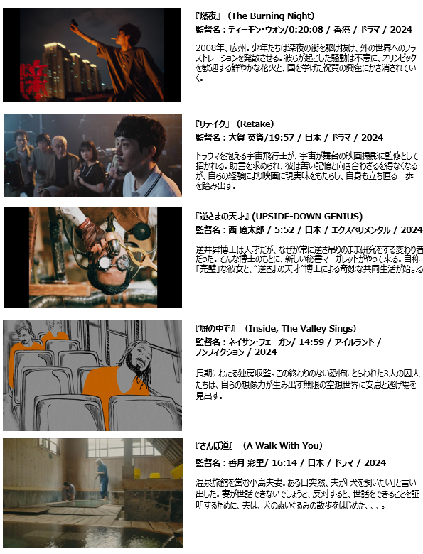 各受賞作品は、10月に開催の秋の国際短編映画祭にて上映予定です。