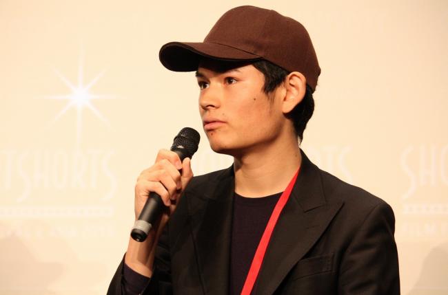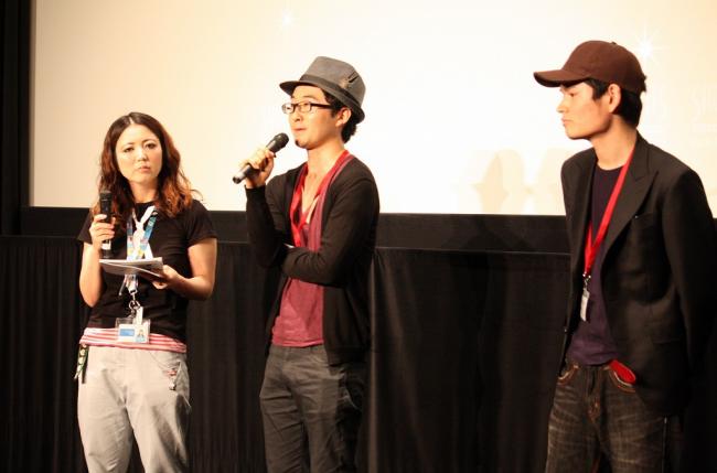 (左から)堀井威久麿監督、出演の松永拓野さん