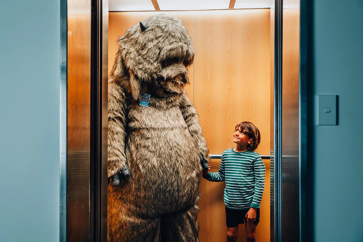 本作の最大の見どころの一つは、やさしい巨人モンスターであり、物語の主人公でもあるモットモットです。彼は文字通り、社会にうまく馴染めない存在の象徴です。どこに行くにも大きすぎるのです! そして何よりも、「世界は一律である」という考え方が、すべての人に合うわけではないことを浮き彫りにしています。また、モットモットとその架空の世界を映像化することで、実物のエフェクトやパペットを駆使し、才能あふれるキャストとスタッフと共に作品を作る喜びも味わうことができました。