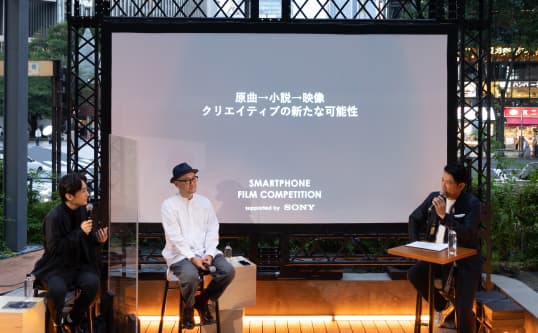 映画祭でのスマートフォン映画作品部門 supported by Sonyのスタートを記念して実施されたオンライントークイベントには、本部門審査員の内田英治監督、『星屑の子』のオリジナルコンセプトである「きらきらにひかる」の作詞作曲を手掛けたいきものがかり 水野良樹さん、SSFF & ASIA 代表 別所哲也が出演しました。